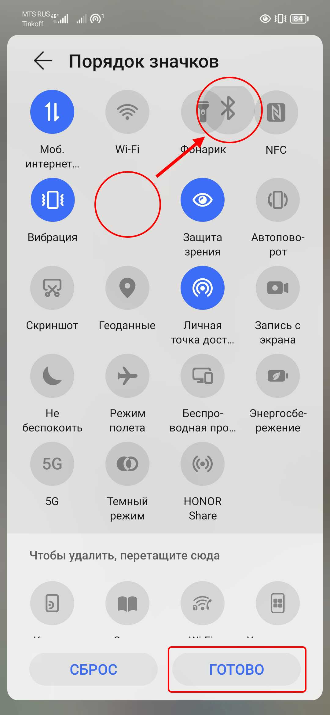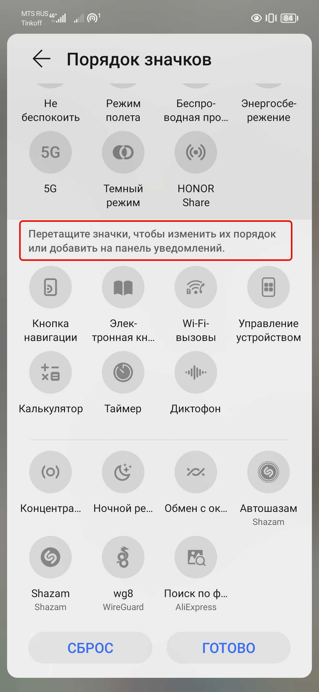 Чтобы изменить порядок кнопок в шторке уведомлений, для начала надо полностью ее открыть, далее пролистать вправо, найти иконку «Сортировка» и нажать на нее. Перед вами откроется окно всех доступных иконок, теперь зажимаете нужную иконку и просто двигает туда, куда вам нужно.