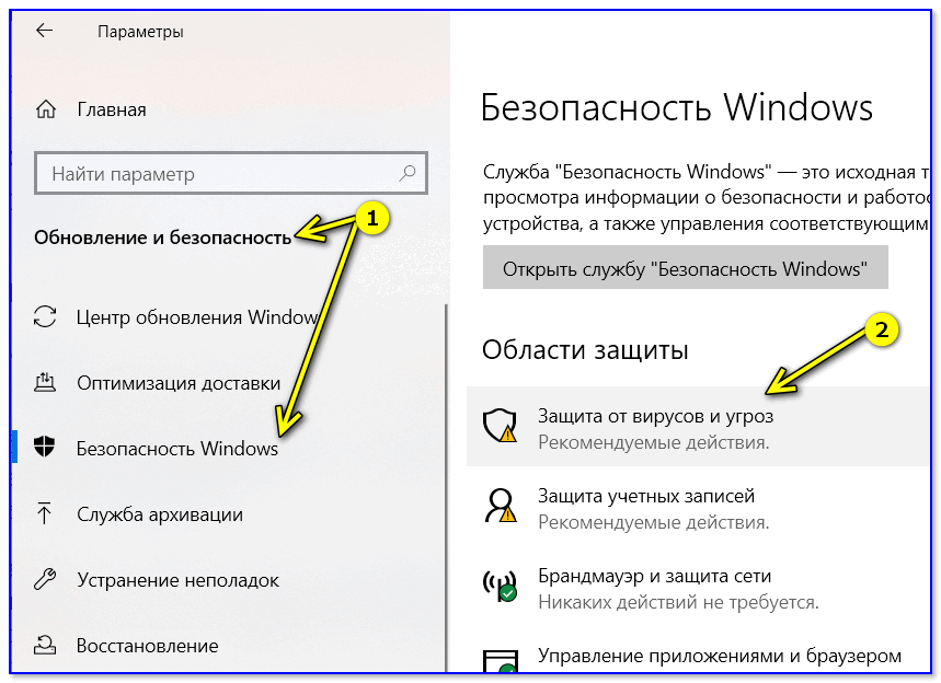 - Следуем в «Безопасность Windows»-«защита от вирусов и угроз».