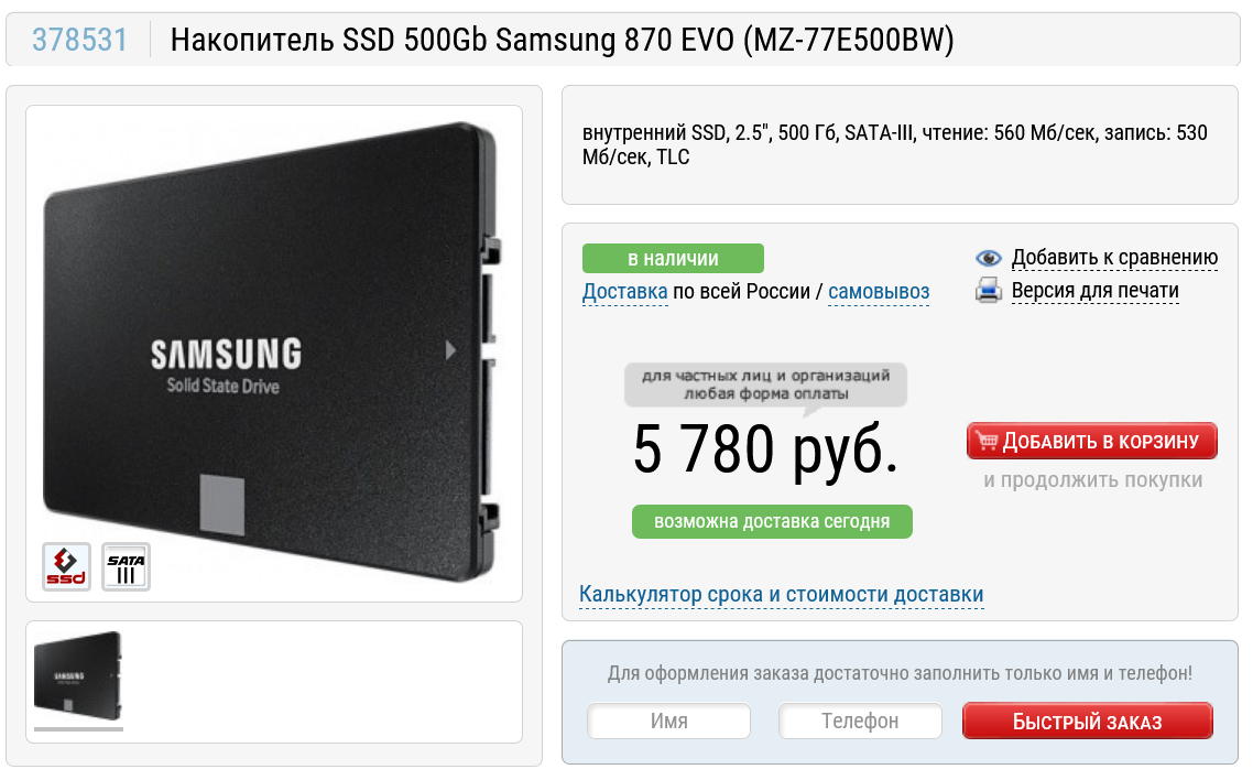Второй по частоте виновник проблем с играми — медленный, сбоящий или забитый «под завязку» накопитель. Если игры стоят на HDD, то его сильная фрагментация или битые сектора могут быть причиной вылетов игры. Универсальным решением может стать покупка SATA SSD накопителя, который подойдет в любую систему, например, надежного Samsung 870 EVO (MZ-77E500BW) объемом 500 ГБ.