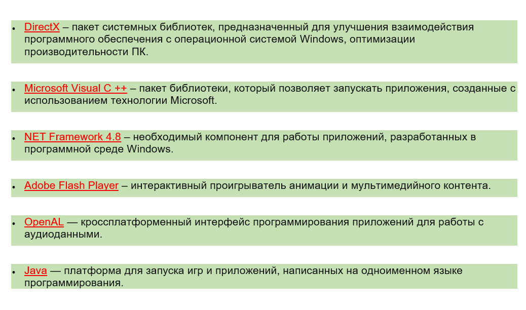 Под системными библиотеками имеются ввиду DirectX, Visual C++, Net Framework. Всё это «добро» активно используется в играх, и, если каких-то компонентов нет — игра может либо сразу вылететь (с черным экраном), либо в процессе покажет критическую ошибку и закроется.