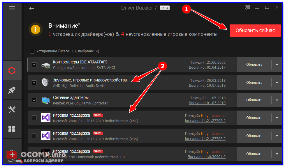 Для авто-обновления видеодрайвера и всех игровых библиотек удобно использовать утилиту Driver Booster. См. скриншот ниже.