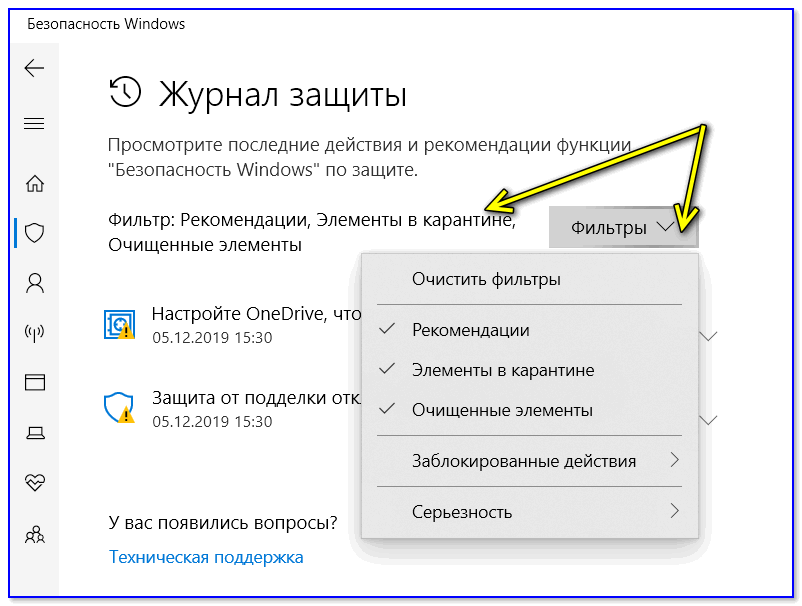 Далее появится журнал: останется только в фильтрах выбрать отображение элементов в карантине и очищенные угрозы — ну и просмотреть, нет ли среди этого списка файлов игры.