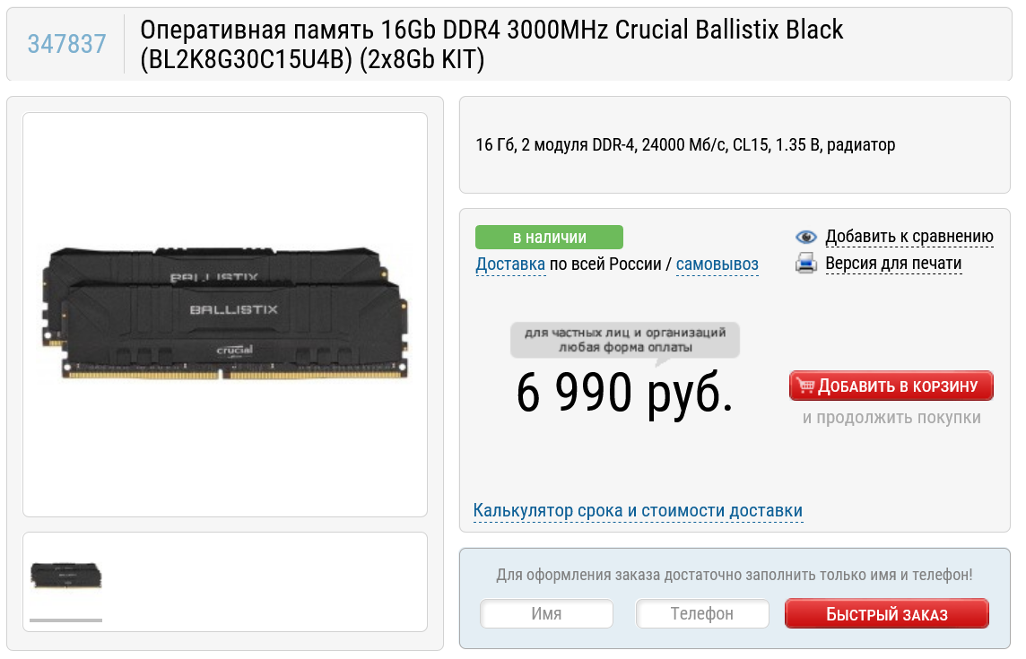 Одна из частых причин вылета игры — несоответствие ПК минимальным требованиям игры. Особенно часто виновница вылетов — оперативная память, которой обычно не хватает. Если у вас менее 16 ГБ ОЗУ, то стоит довести ее объем до этого числа, сохранив двухканальный режим работы. Такой объем стоит сейчас не дорого по сравнению с ценами на остальные комплектующее, например, модули Crucial Ballistix Black (BL2K8G30C15U4B) объемом 16 ГБ и с частотой 3000 МГц обойдутся вам в Регарде в 6990 рублей.