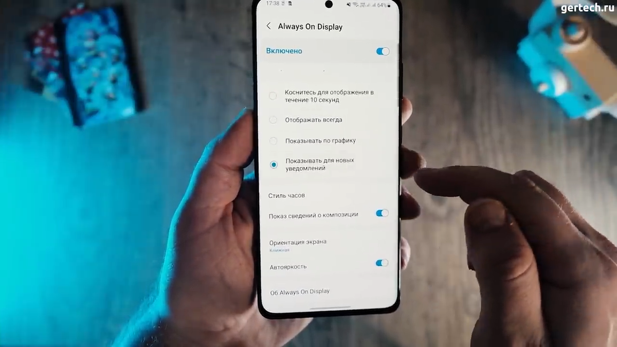 Дисплей Always On может быть активирован по новому сценарию при получении уведомления. То есть Always On включается только тогда, когда на смартфон приходит какое либо уведомление.