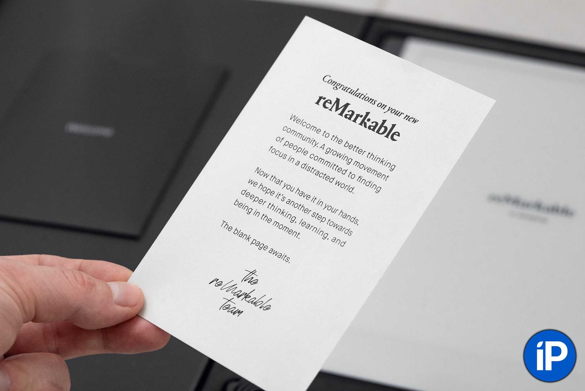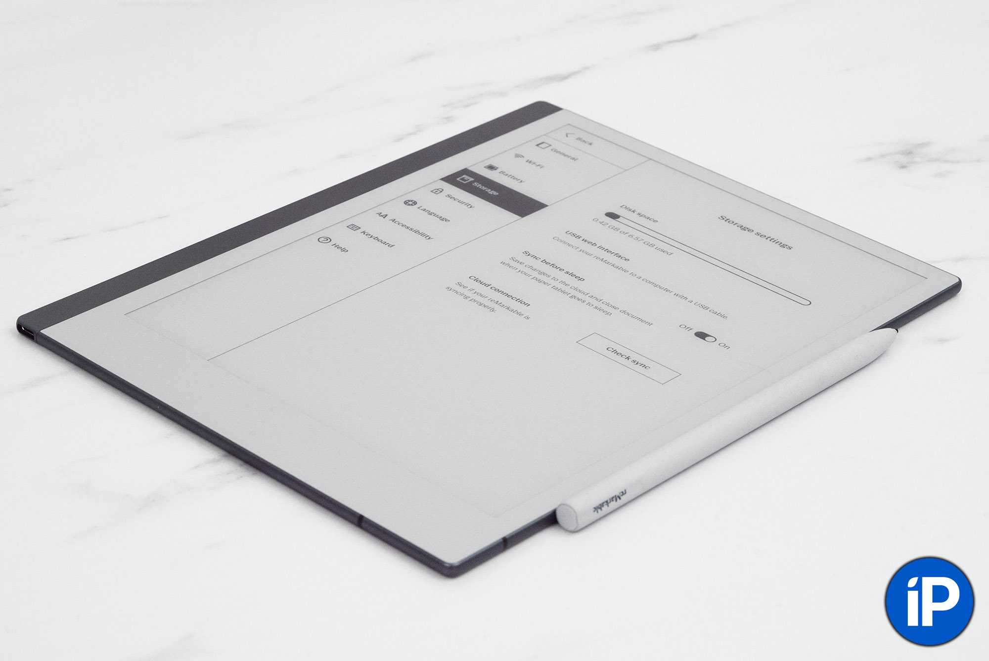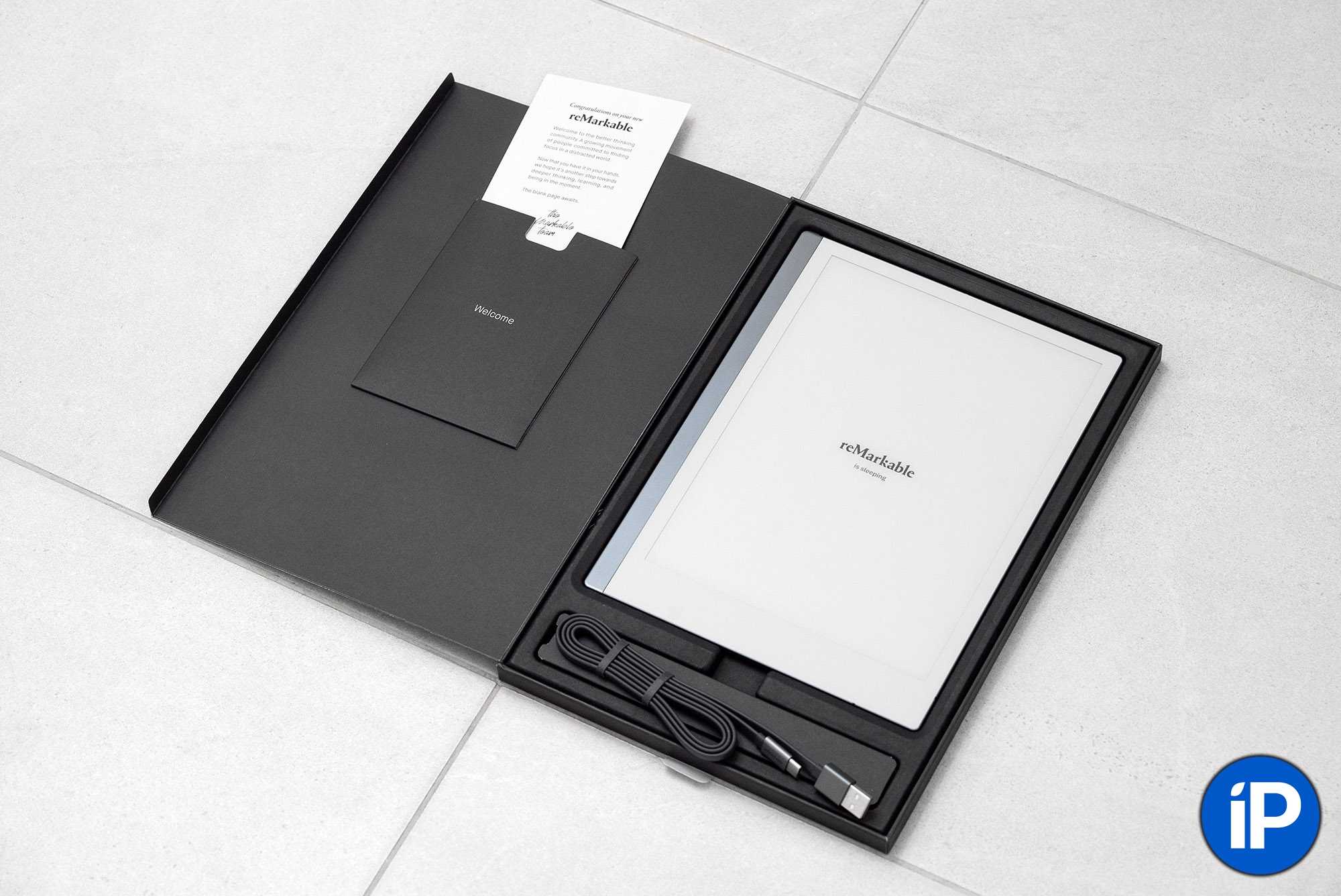 Внутри – планшет, кабель USB-C для зарядки и базовая справка по функциональности. При первом включении вас попросят подключиться к Wi-Fi (встроен в планшет) и завести учётную запись reMarkable Connect для автоматической синхронизации заметок с фирменным «облаком». Это позволит открывать заметки на компьютере и смартфонах: бесплатно дадут до 50 дней онлайн-хранения каждой неиспользуемой заметки, а за 3 доллара в месяц это ограничение уберут. Для платной подписки требуется зарубежная карта.