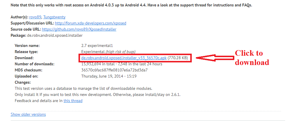 From here you can download the Xposed files on your phone., make sure that you download the correct file for your phone.