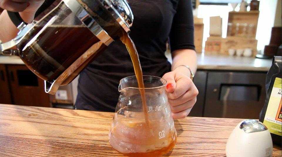 - Из 7 грамм свежемолотых зерен и 150 миллилитров воды варится напиток. Для этого применяется методика постоянного пролива.