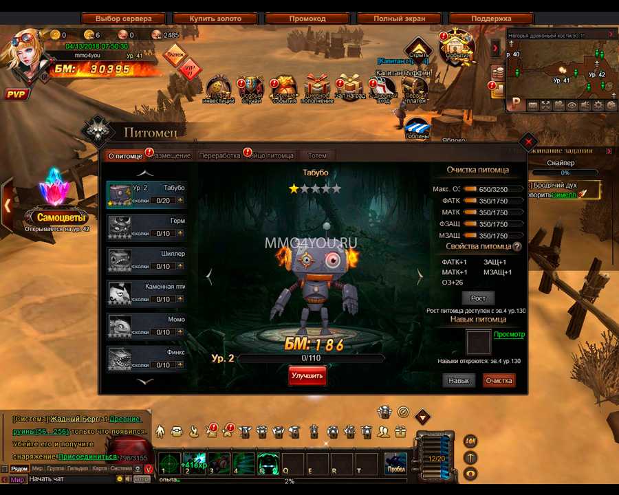 Быстрее перемещаться по миру помогут ездовые животные, лошади, слоны и другие маунты. Кстати, их тоже можно улучшить. Только повышается не мощность умений или скорость передвижение, а уровни до эволюции. То есть, первым вашим маунтом будет обычная лошадь, но прокачивая ей эволюцию вы получите очень крутого скакуна. Для прокачки животных требуется специальный камень, который выпадает при убийстве монстров.