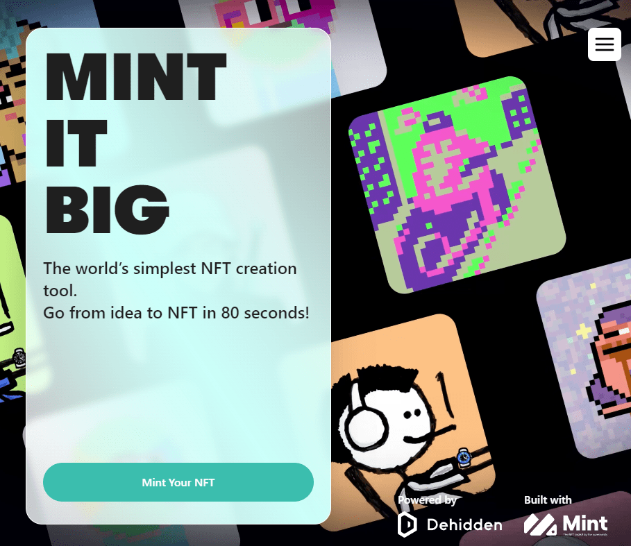 Быстро и бесплатно создать простую NFT-картинку в сети Polygon можно в сервисе MintNFT mint.dehidden.com