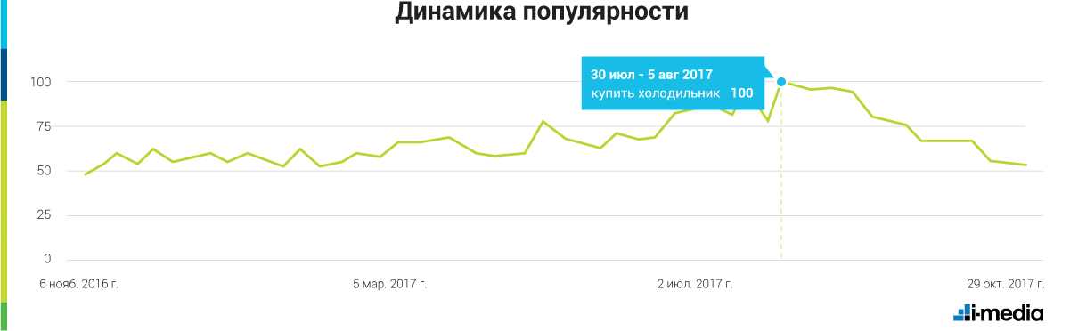 Рис. 13. Динамика популярности по запросу «Купить холодильник», Google Trends, ноябрь 2016–октябрь 2017