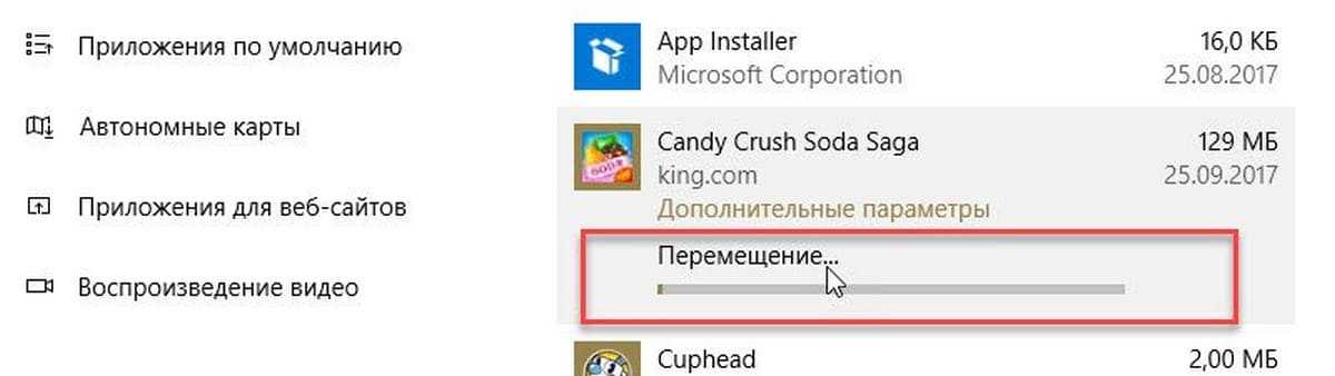 В течение нескольких секунд вы увидите статус «Перемещение», и приложение будет перемещено.