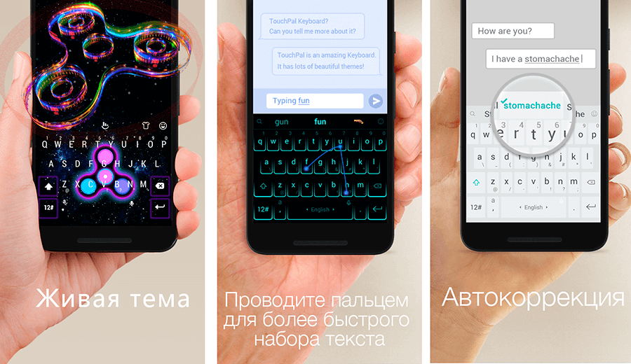 - Свайп-ввод текста — не нужно нажимать на каждую клавишу, можно вводить буквы, скользя по клавиатуре.