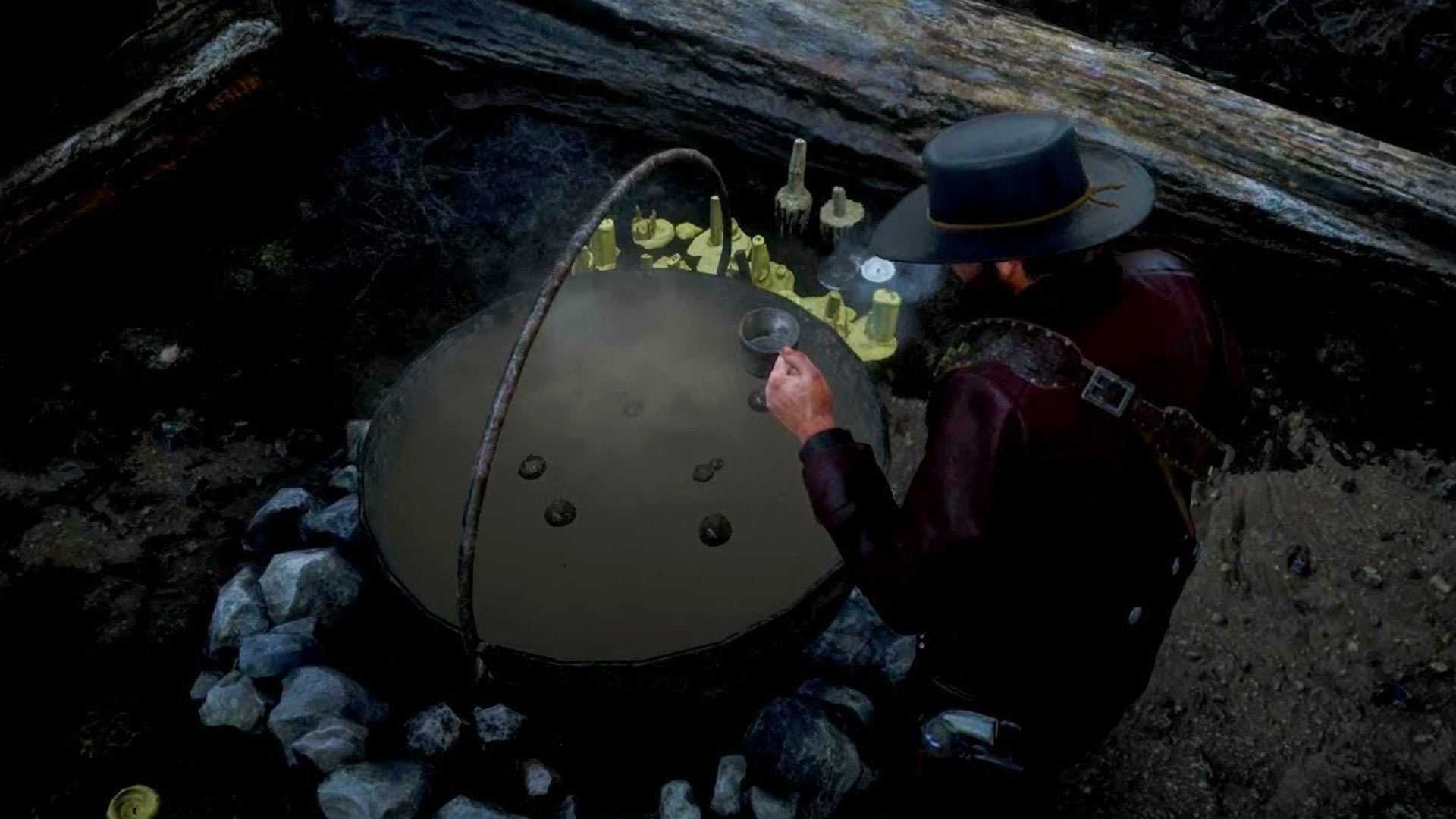 Люди RDR 2 должны начать сомневаться в том, что происходит в их городе. Это место — рассадник какой-то странной и сверхъестественной деятельности. Если вы направитесь к северу от гризли, вы столкнетесь с пузырящимся котлом, полным неизвестной жидкости. Фу! Достаточно смелые игроки могут попробовать таинственное варево, но при этом он отключатся, затем проснуться и обнаружат, что они находятся в новом месте. Хм, может быть, потенциальные ведьмы хотели, чтобы ты был там.