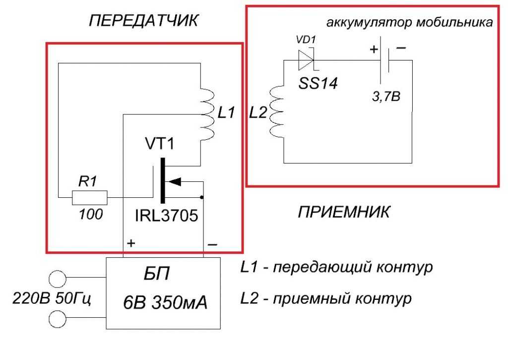 Схема принципа действия беспроводных зарядных устройств