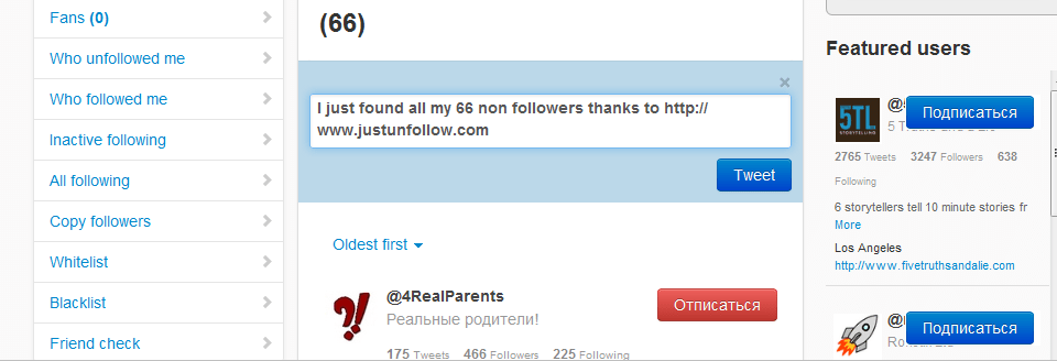 Поэтому мы рассмотрим сразу несколько способов, как можно отфолловить множество людей в twitter. Начем с обзора сервисов, которые облегчают данную работу, а потом рассмотрим пару программ, которые также справляются с данной задачей.