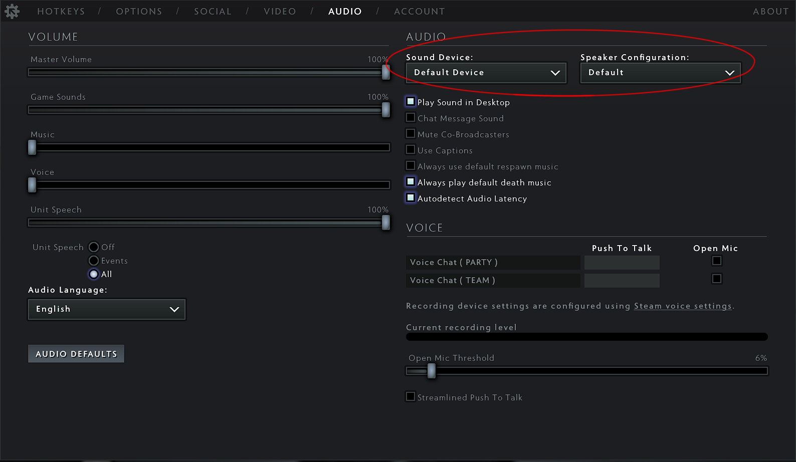 Строка «Устройство голосового вывода» позволяет настроить динамики!