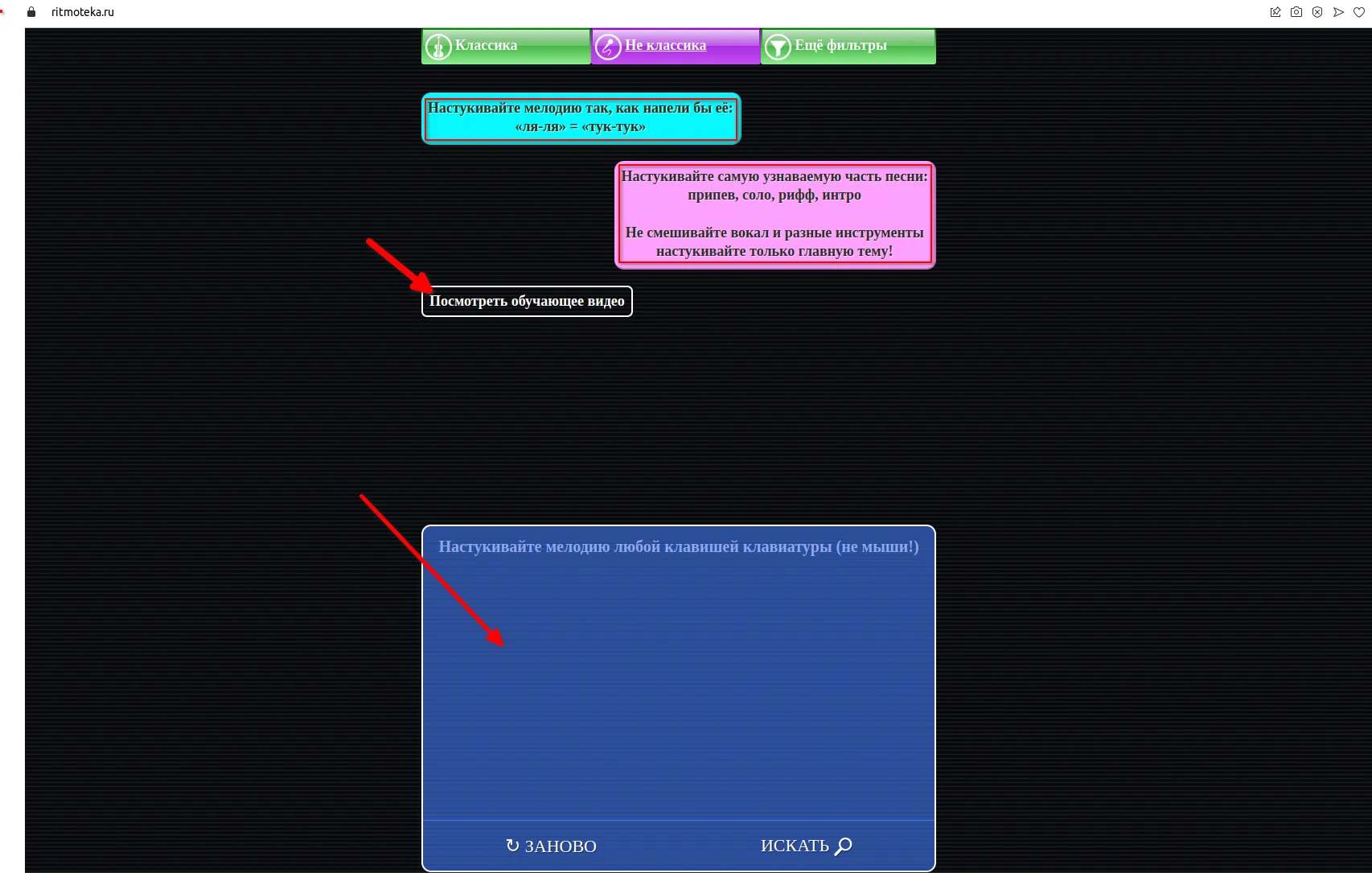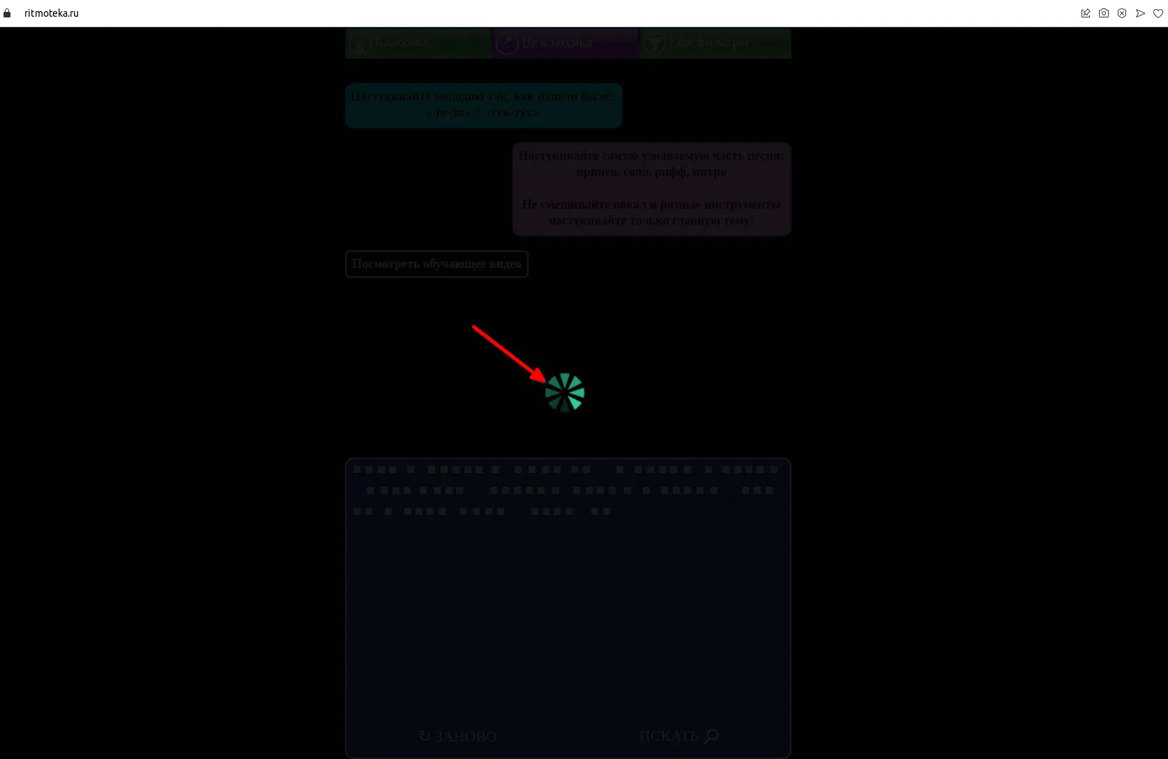 Сам процесс поиска песни предельно прост. Сначала необходимо просмотреть короткий видеоролик, рассказывающий о том, как необходимо настукивать ритм разыскиваемой песни. Для этого необходимо нажать на кнопку «Как стучать», расположенную в правом углу.