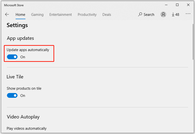 Step 4: Under the App updates section, toggle on the option Update apps automatically.