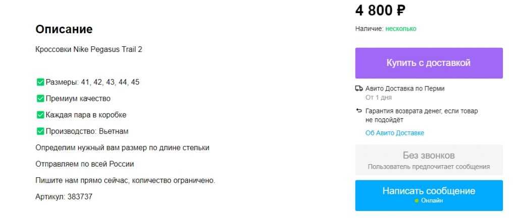 Сравните цены. Оригинальные Nike Pegasus не могут стоить в России 4000 р, если на официальном сайте Nike они стоят 120$. Кроссовки нужно закупить, привезти в Россию, растаможить, а продавец должен заработать. Да, ценник не всегда показатель, потому что можно продавать подделку по высокой цене. Переходим к следующим пунктам.