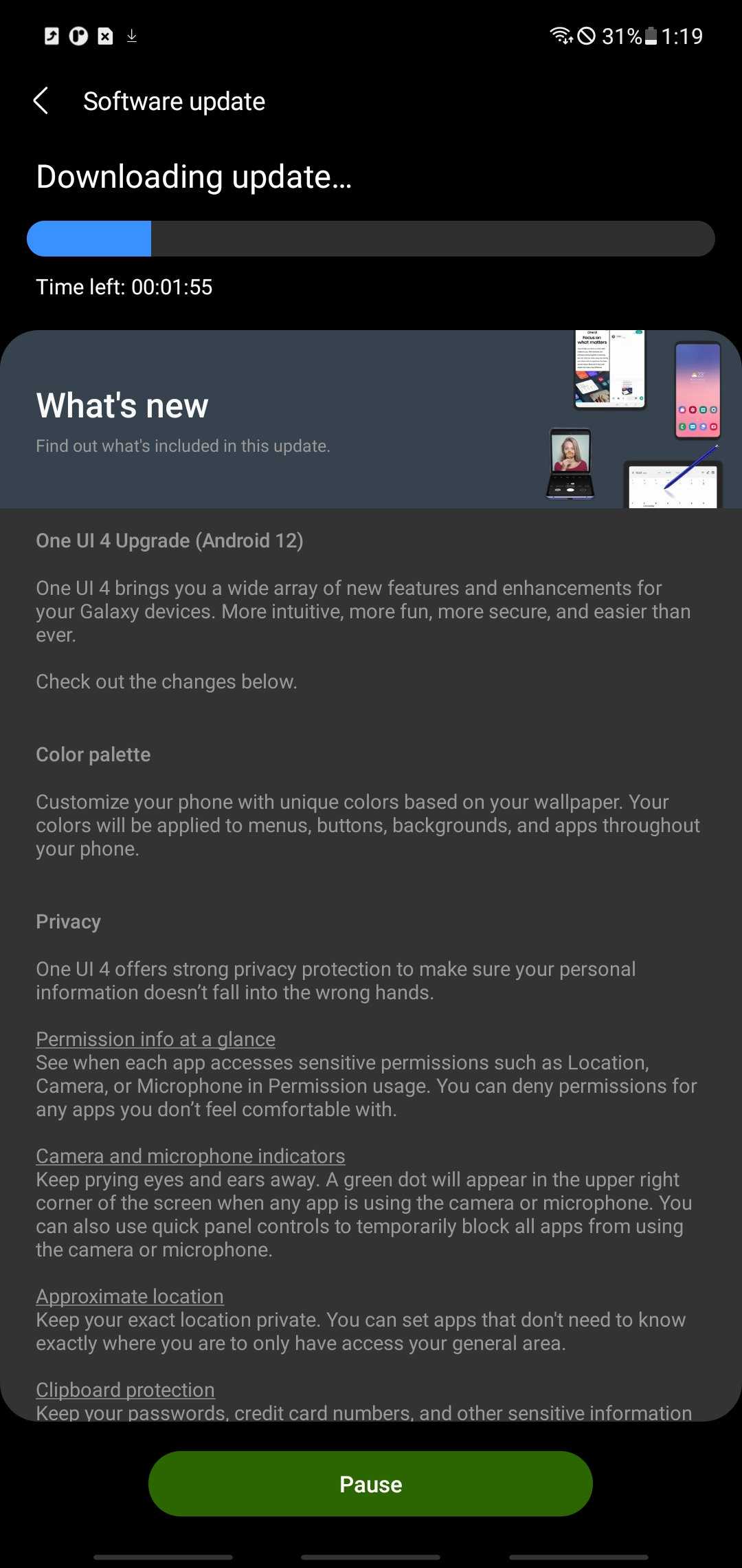В бета-версии OneUI 4.0 также есть большинство полезных свойств и функций Android 12, таких как панель конфиденциальности, новые индикаторы камеры и микрофона в строке состояния и быстрые настройки и многое другое. Он также имеет новый эффект зарядки.