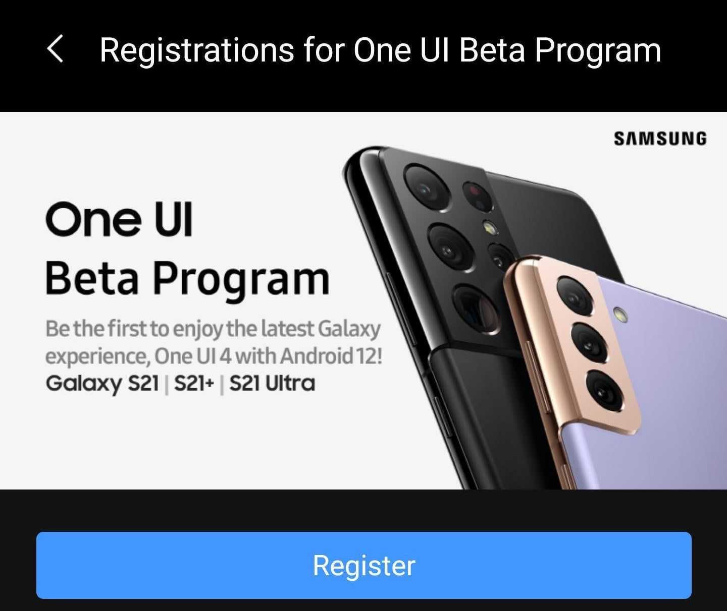 Как и все В этом году мы будем перечислять здесь ссылки для скачивания OneUI OTA, а также прямые ссылки для регистрации для ваших устройств Galaxy. После того, как вы нажмете ссылку для регистрации, вы сразу же попадете в программу бета-тестирования.