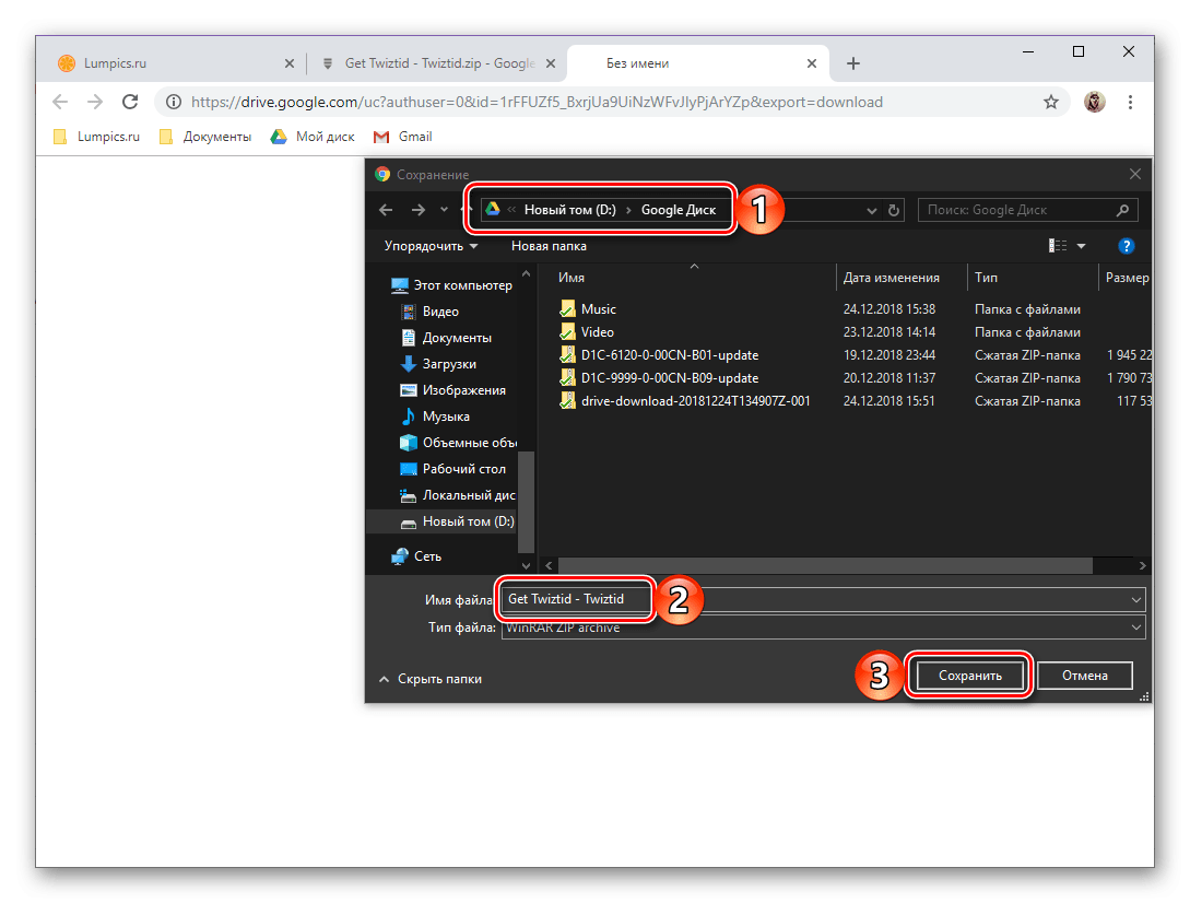 После нажатия кнопки «Скачать» автоматически открывается стандартный браузер, в котором нужно указать папку для сохранения, при необходимости дать файлу желаемое имя и затем нажать «Сохранить».