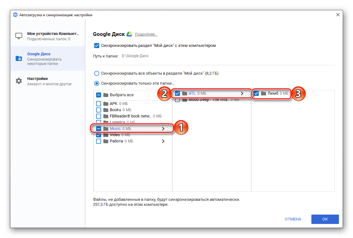 Как синхронизировать определенные папки на компьютере с Google Диском