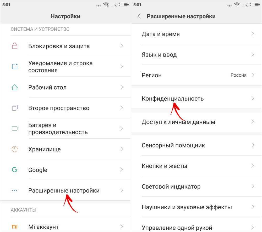 Достаточно зайти в «Настройки», перейти в раздел «Расширенные настройки» и открыть подраздел «Конфиденциальность».