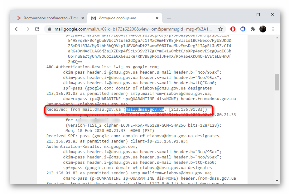В некоторых случаях у пользователя на руках есть только почтовый сервер, используемый отправителем. Часто такая ситуация происходит, когда письмо было получено от конкретной организации или веб-ресурса. К слову, определить этот адрес тоже можно, изучая исходный код письма так, как это было показано выше. Там только требуется отыскать строку «Received» и сразу же после «from» определить почтовый сервер.