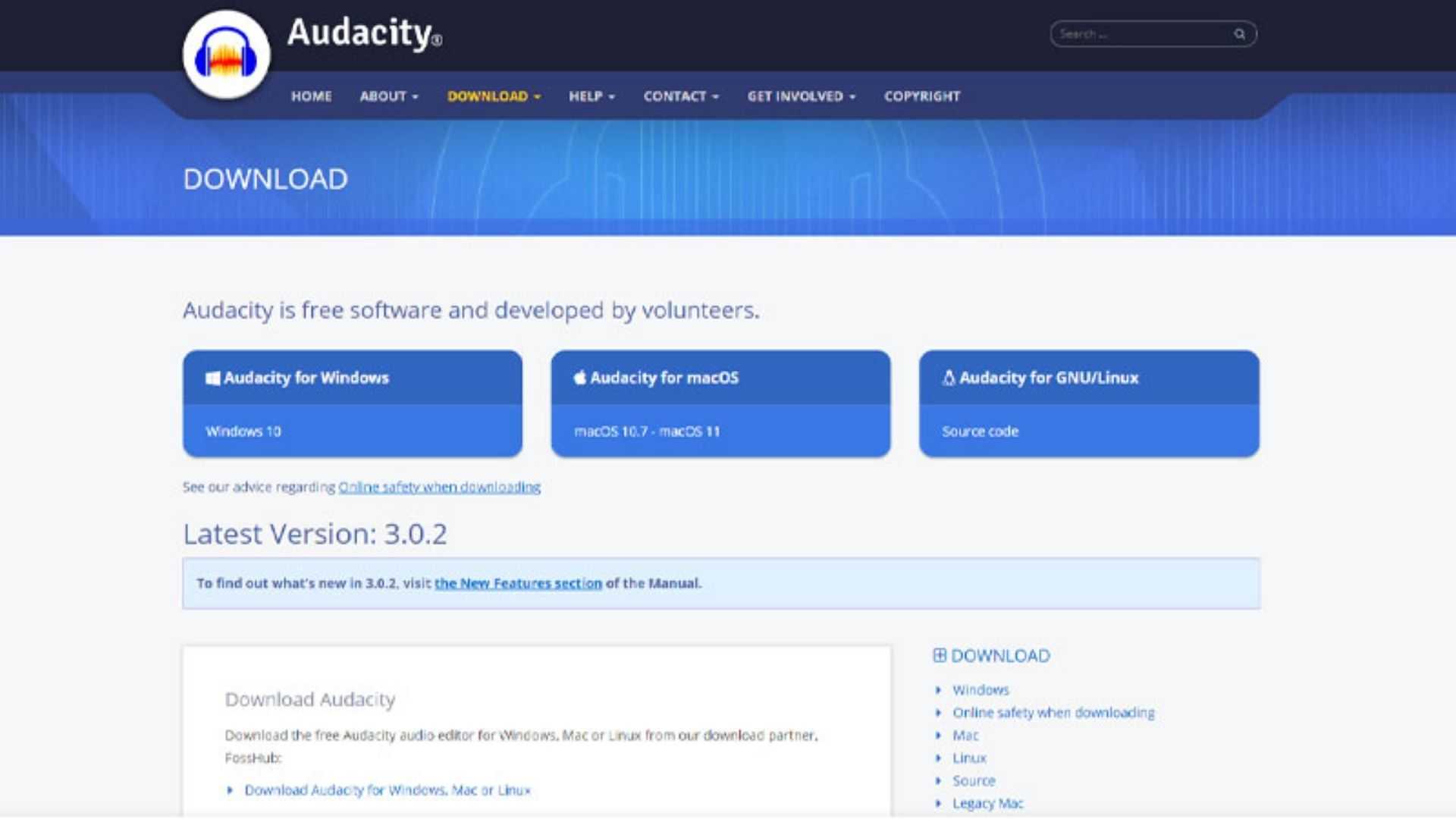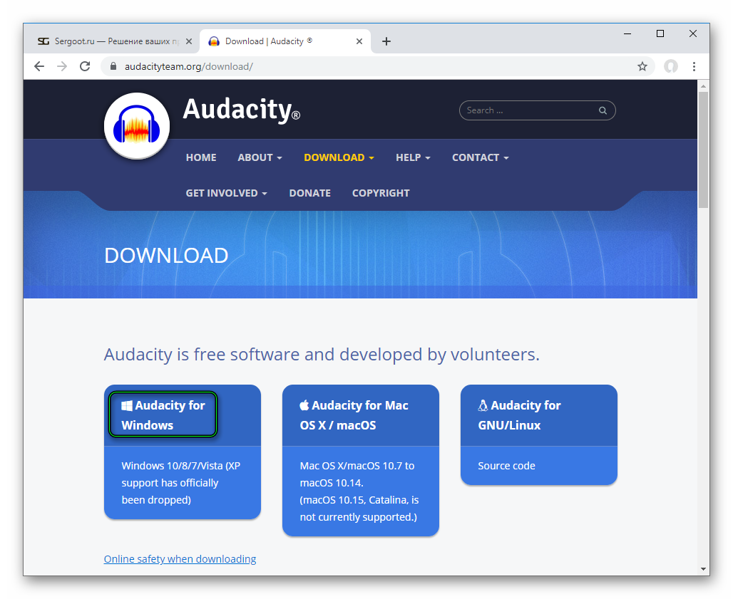 - Посещаем ссылку https://www.audacityteam.org/download/.