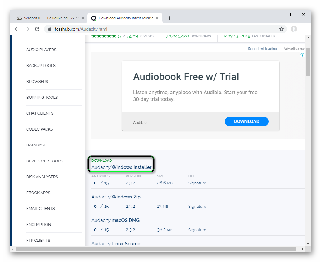 - Загрузите Audacity с официального сайта и установите его на свой компьютер.