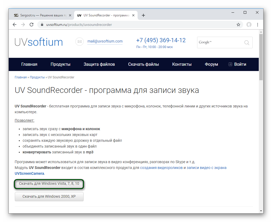 - Посещаем страницу https://uvsoftium.ru/products/uvsoundrecorder.
