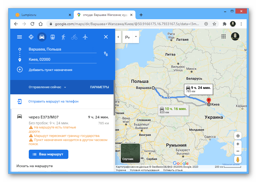 Наверное, самой важной частью онлайн-карт является возможность построения маршрута, и тут выиграет сервис Google Maps, гарантирующий максимально эффективный путь для выбранного типа транспорта с учетом дорожных событий и прочих критериев. Проблемы могут быть в случаях, если на каком-либо участке дороги проводятся работы, так как Гугл обновляется весьма медленно