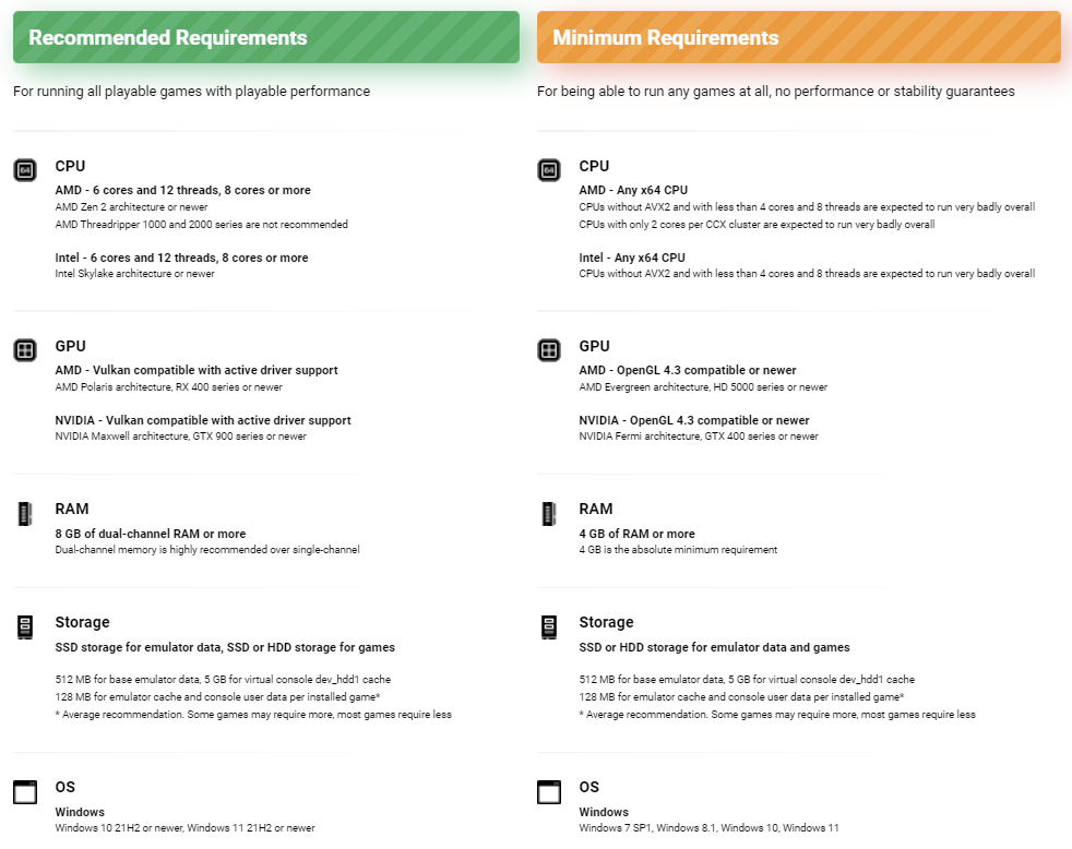 Для комфортной эмуляции желательно иметь компьютер, подходящий под рекомендованные системные требования и выше