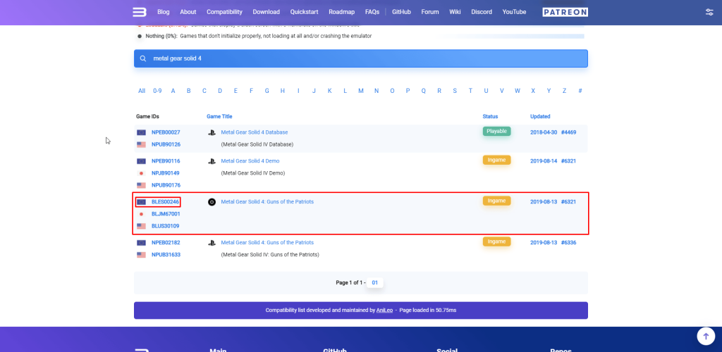 Первым делом определимся с версией. Русский язык (если он есть) имеют только Европейские версии (PAL, ES, EA). Чтобы узнать нужную нам версию, заходим на сайт RPCS3 в раздел Compatibility.