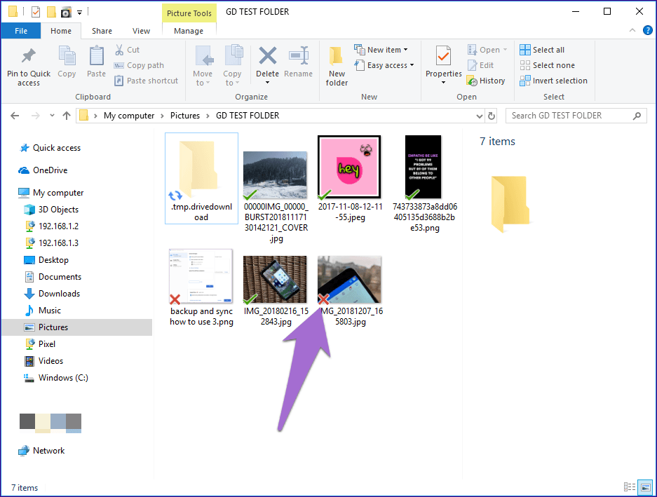 Если вы выберете первый, элементы, удаленные на вашем компьютере, все еще будут доступны на веб-сайте Google Drive / в мобильных приложениях. Но если вы удалите их непосредственно с Диска, копия будет доступна на нашем компьютере (при условии, что вы ее не удалили), и вы увидите значок красного креста на файле, указывающий, что он не синхронизирован.