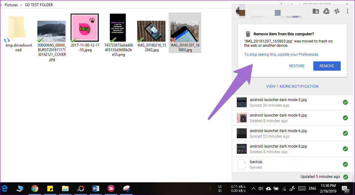 Вышеуказанные настройки действительны только для локальной папки, поскольку для файлов Google Диска, синхронизированных с вашим компьютером, все по-другому. Удаление их с вашего компьютера или непосредственно с диска удалит их отовсюду.