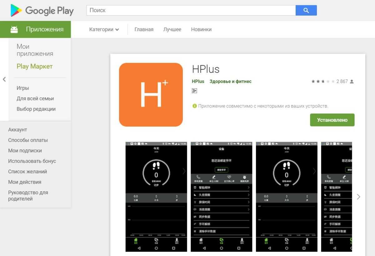 Самый простой способ установки приложения в телефоны Андроид – найти его в Play Маркет. Для смартофонов с iOS поиск ведется в App Store. Но часто подходящие программы для фитнес-браслетов размещаются в официальных магазинах производителей телефонов.