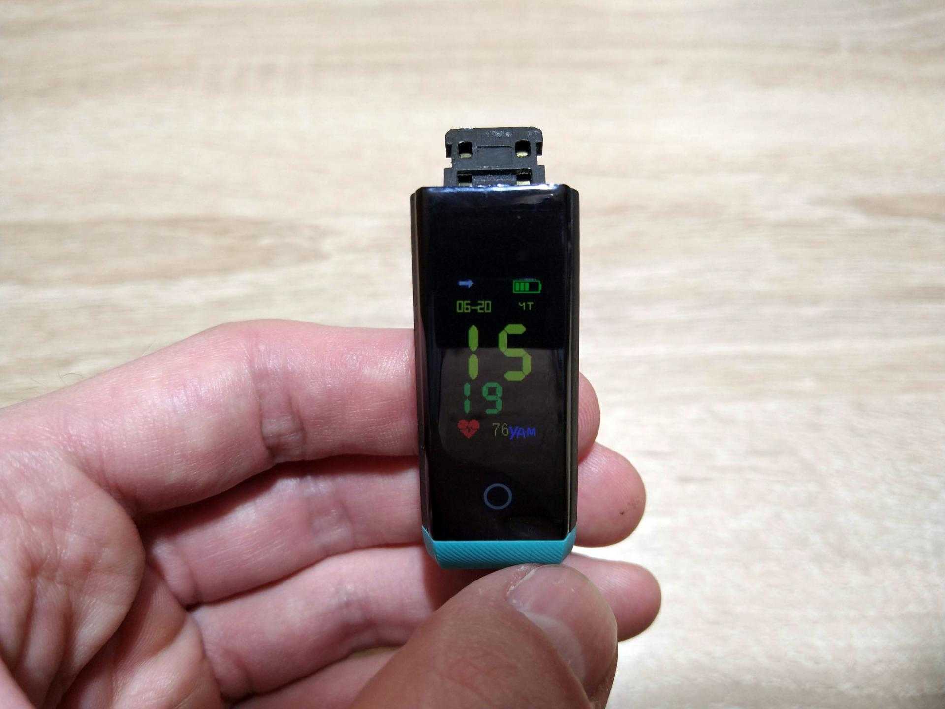 Прочел инструкцию, начал тянуть — не выходит. Ещё раз перечитал, снова тяну за ремешок, но уже сильнее. Зарядить ведь устройство надо (индикатор батареи красный). Посмотрите на угол USB-порта. Это поможет вам справиться с ним проще, чем это делал я.