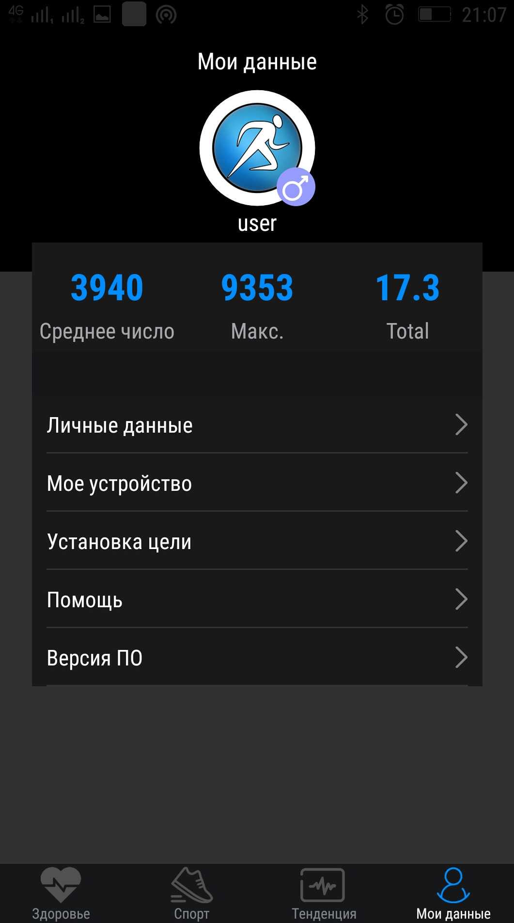 Для более корректной обработки данных о вашей физической активности в приложении потребуется задать ваш пол, возраст, вес и рост. Эти данные также помогут точнее рассчитывать пройденное вами расстояние исходя из количества сделанных шагов. Здесь же вы можете задать свою норму шагов и максимальный пульс для физических упражнений.