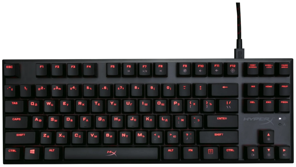Популярная модель выполнена по типу TKL, поэтому не занимает много места на рабочем столе. Она является излюбленным решением игроков в CS:GO и Overwatch, поскольку для срабатывания каждой клавиши нужно применить минимальное количество усилий.
