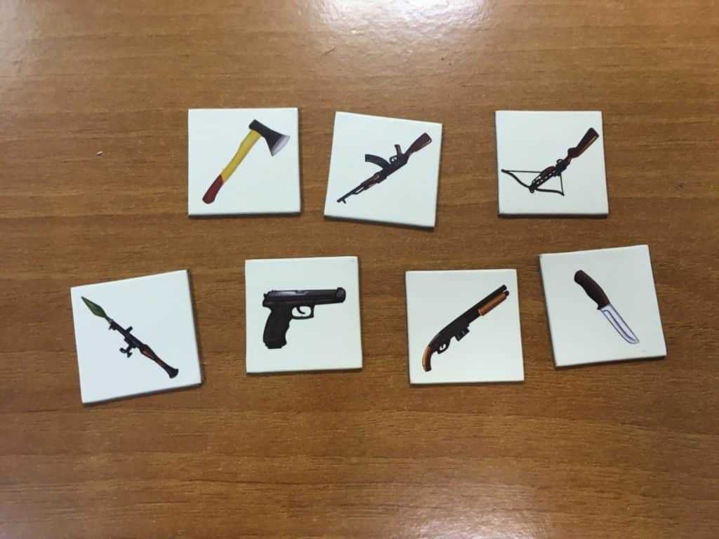 В игре нет какого то магазина и банка оружия, но его можно найти, исследуя страшный дом. Переворачивая тайлы на игровом поле, игроки смогут обнаружить разные предметы, в том числе применяемые для самозащиты при встрече с зомби. Оружием можно делиться. Особенно это правило поможет, когда у вас уже образовался боевой запас, а другу несём защищаться, в случае неожиданного нападения. Помните, что вы играете вместе и не соперничаете за выживание.