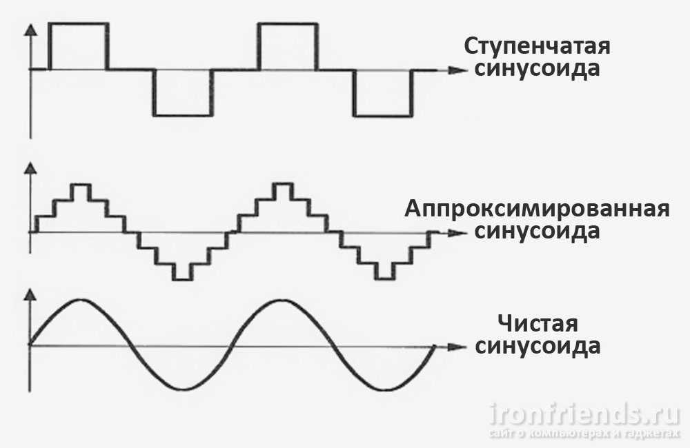 В большинстве ИБП форма выходного напряжения получается отличной от классической синусоиды, которая приходит к нам из розетки, принимая ступенчатую или аппроксимированную форму.