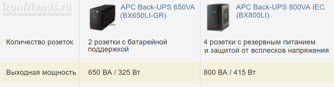 Однако, стоит отметить, что после перехода компании APC под крыло французов, качество бюджетных моделей снизилось, что отмечают многие пользователи. Корпус стали делать из дешевого пластика с едким запахом, а сами ИБП стали чаще выходить из строя. Поэтому лучше брать либо старые проверенные модели из серии Back-UPS BK (в корпусе из белого пластика), либо уже что-то подороже из серии Back-UPS Pro (всесторонняя защита) или Smart-UPS (самые качественные и надежные). В принципе еще неплохие и удобные Back-UPS BE (паук с евро розетками), они подходят для не очень мощных ПК. Больше всего нареканий на современные серии BX и BC, но и они лучше дешевого китайского хлама.