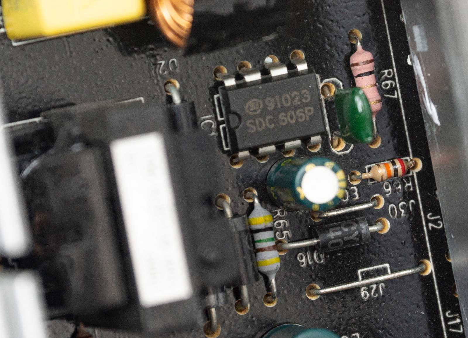 Контроллер преобразователя и корректора мощности CM6805BSX распаян перед радиатором в вертикально ориентированном корпусе. Подобное расположение стало уже визитной карточкой моделей HIPER HPB.
