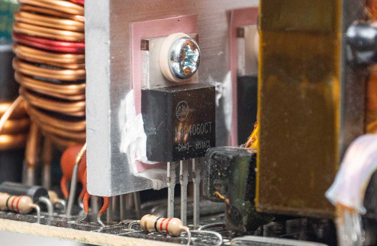 На втором крупном радиаторе находятся четыре диодные сборки 4060CT канала +12 В и две сборки 3045C каналов +5 и +3,3 В.