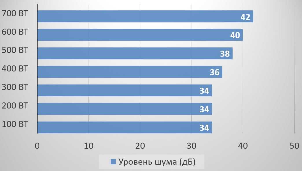 Вентилятор без маркировки, модель неизвестна. Назвать его бесшумным нельзя, даже на минимальных оборотах заметно шуршание подшипника, которое в закрытом корпусе вы не услышите и его можно назвать комфортным. Примерно после половинной нагрузки обороты начинают линейно расти с одновременным повышением уровня шума, на максимальной нагрузке шум превышает условно комфортный уровень в 40 дБ.