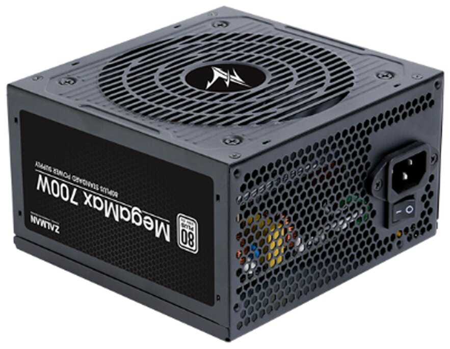 Zalman MegaMax(ZM700-TXII) 700W – блок питания средней ценовой категории от известной корейской компании, предлагающий пользователям вполне достойные параметры по токам и напряжению для надёжного питания материнской платы и всех подключённых компонент. Данная модель стандартизирована и соответствует требованиям норм 80 PLUS, что для бюджетного БП считается отличным показателем и гарантирует высокое качество используемых электронных компонент.