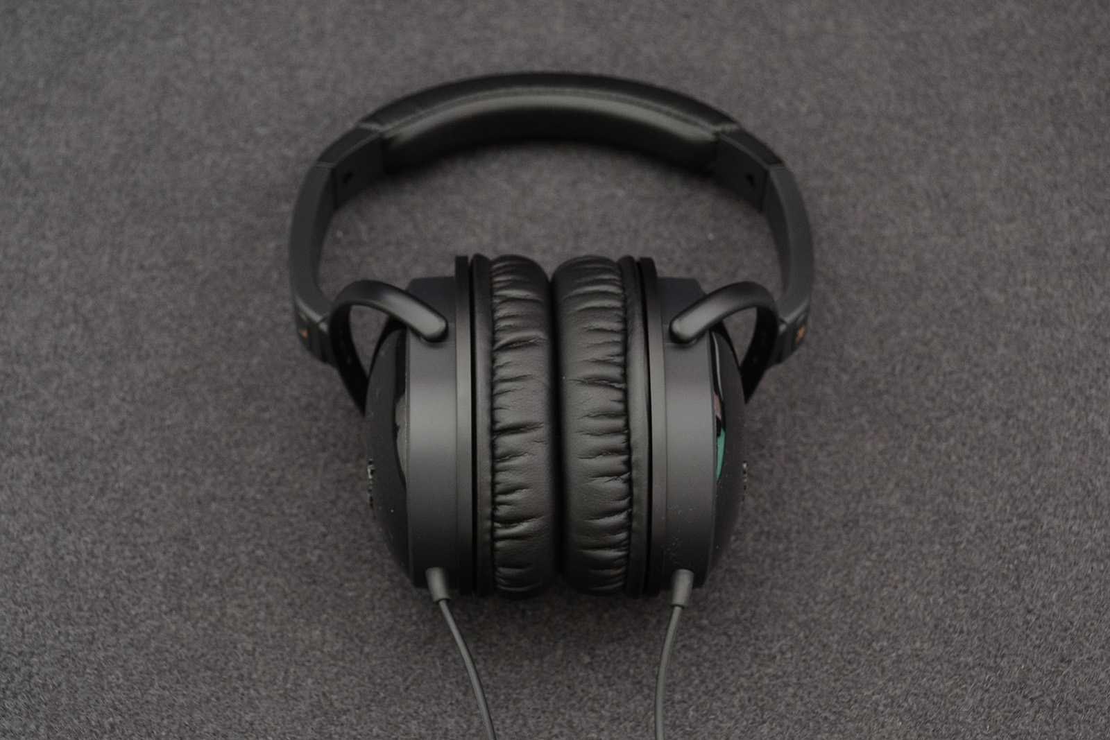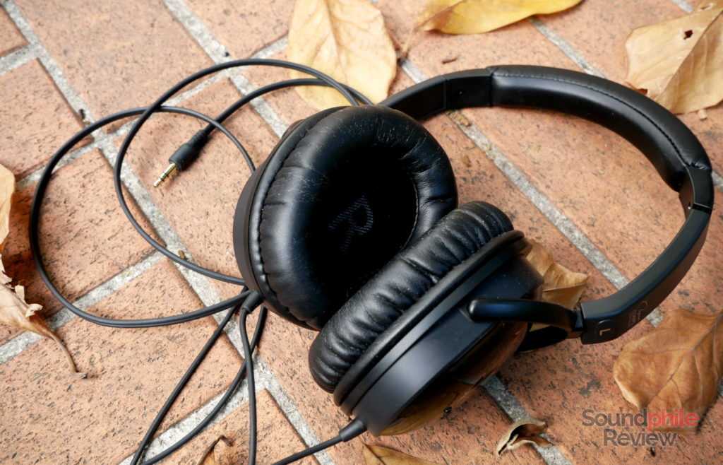 The top of the headband is covered in faux leather and has a bit of padding. The padding of the earcups is covered with the same faux leather. Build quality is generally good, with plastic feeling strong enough to resist daily use. It definitely does not come off as cheap, but neither as premium.