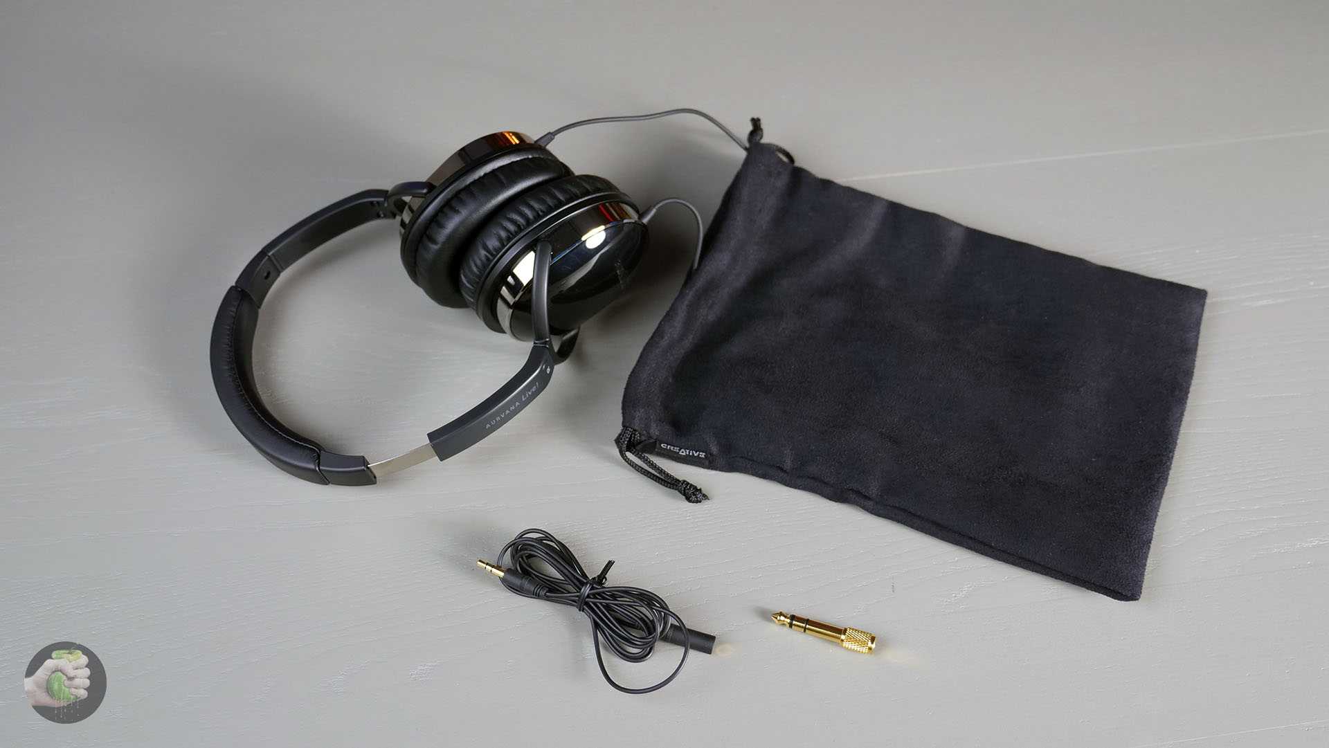 Комплектация тут самая простейшая: сами наушники, удлинитель кабеля, переходник с 3,5- на 6,3-мм «джек», а также мешочек для переноски